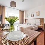 The 30 m^2 apartment is situated in the Dzielnica Uzdrowiskowa district, and is also a minute's walk from MarinGo. Bastion Army Shop is 2.6 km from this beachfront apartment, while Przesmyk bus station is only 5 minutes' stroll from the property.